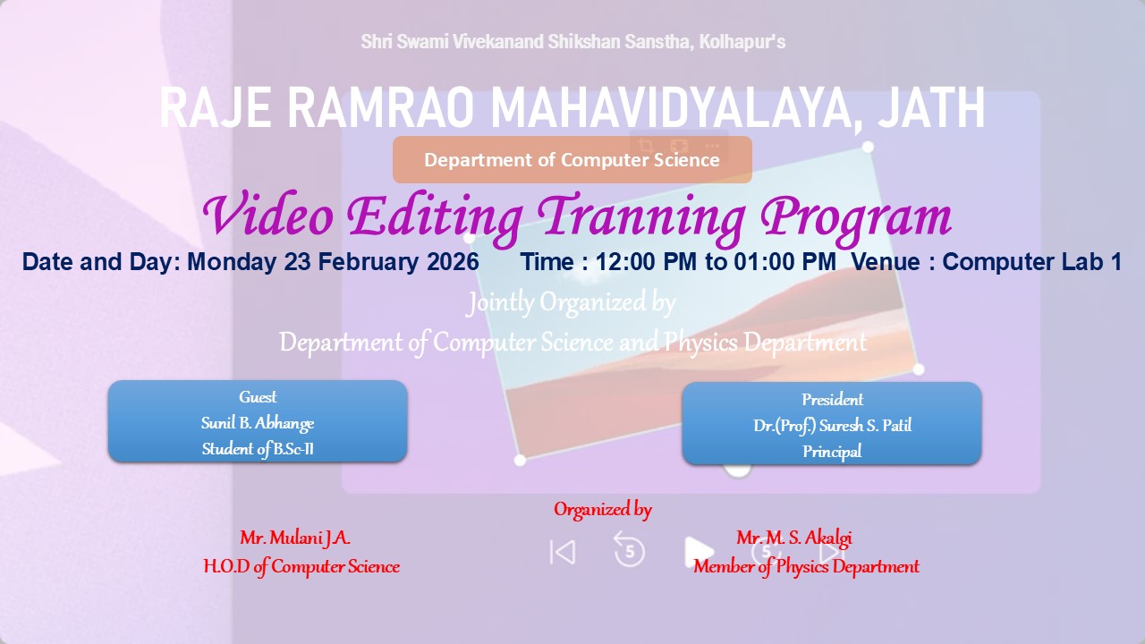 One Day Video Edting Traning program on 23 Feburary 2026.