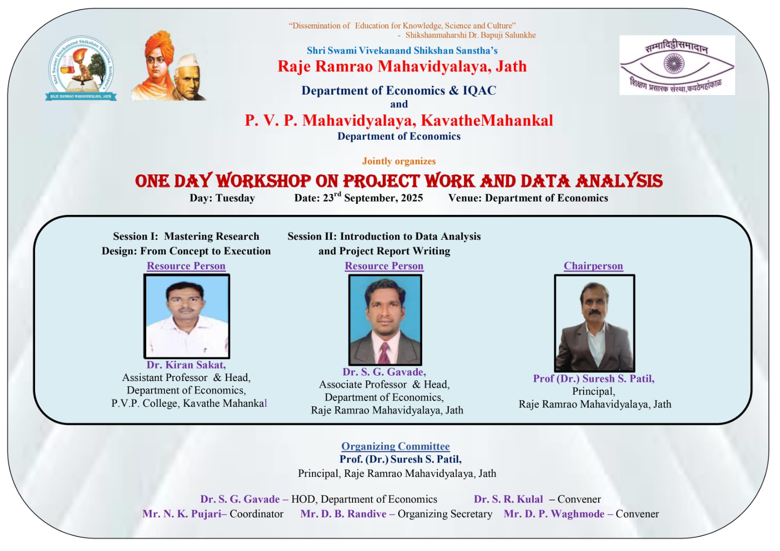 "ONE DAY WORKSHOP ON PROJECT WORK AND DATA ANALYSIS" on 23th September 2025.