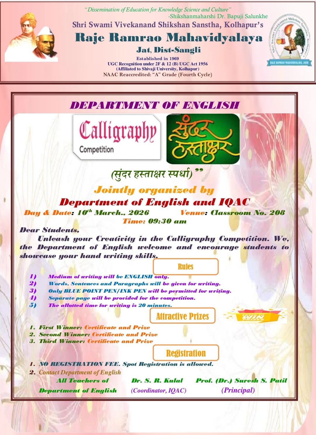 Calligraphy Competition हस्ताक्षर(सुंदर हस्ताक्षर स्पर्धा)" on 10/03/2026.