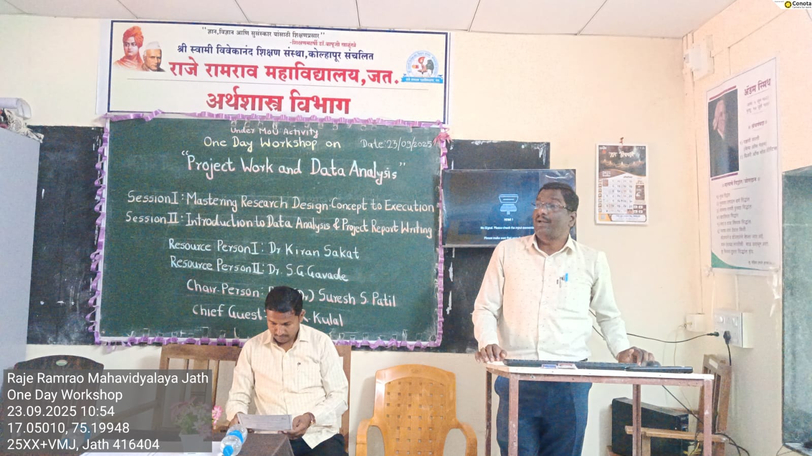 "ONE DAY WORKSHOP ON PROJECT WORK AND DATA ANALYSIS" on 23th September 2025.