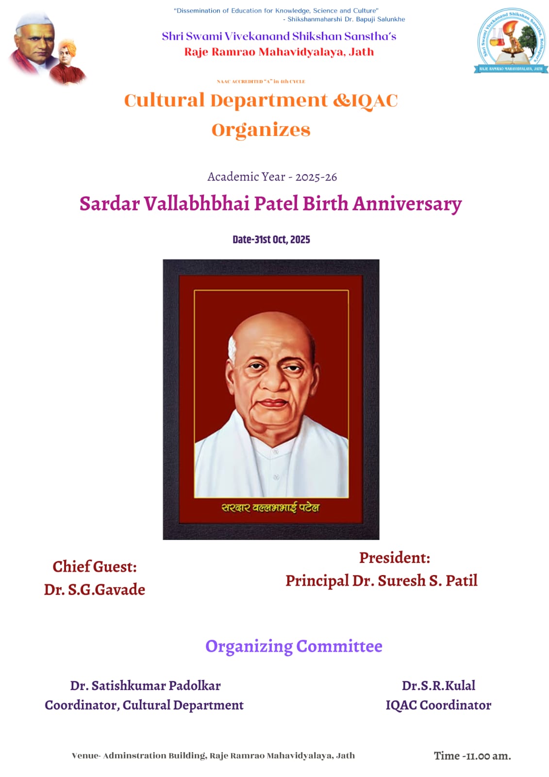 Sardar Vallabhbhai Patel Birth Anniversary on 31st October 2025.