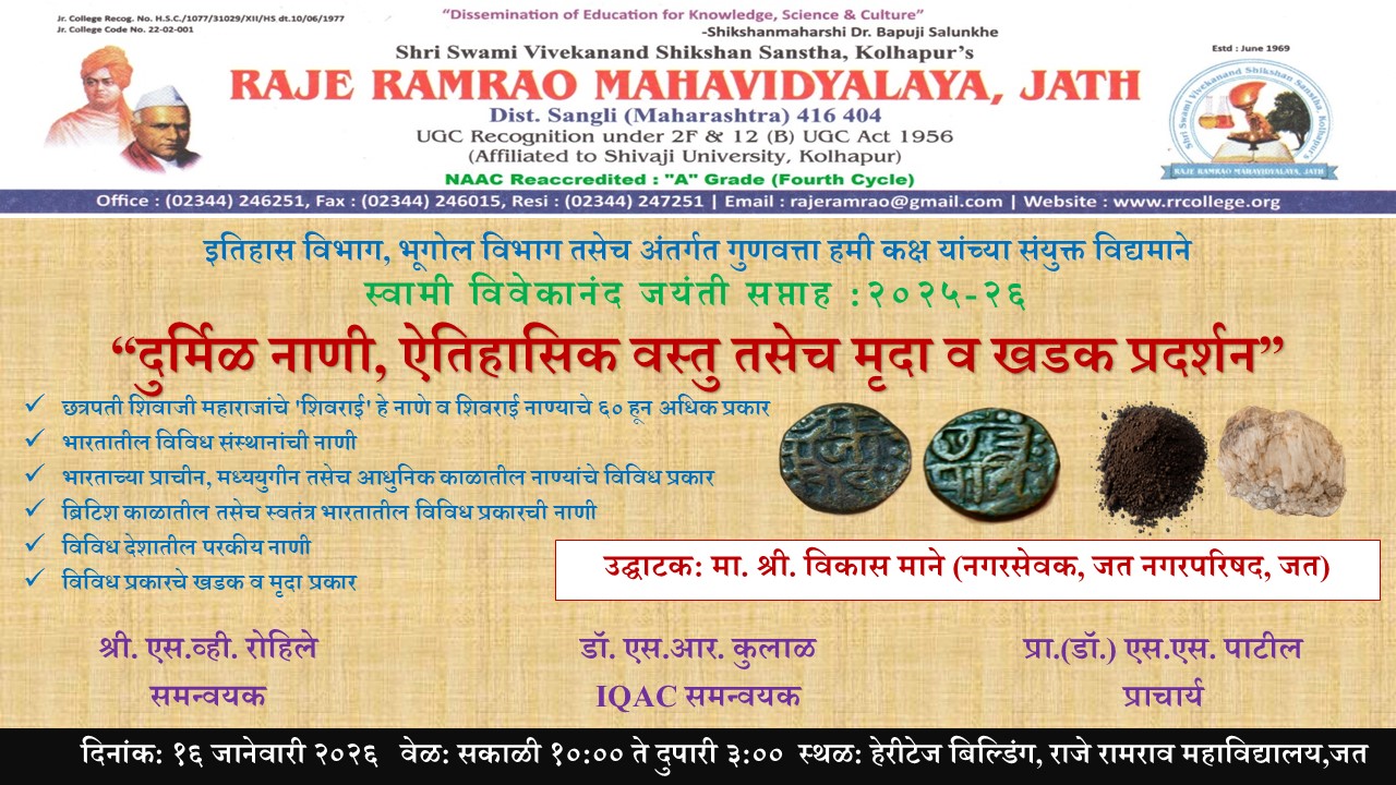 "दुर्मिळ नाणी, ऐतिहासिक वस्तु तसेच मृदा व खडक प्रदर्शन" दिनांक १६/०१/२०२६.