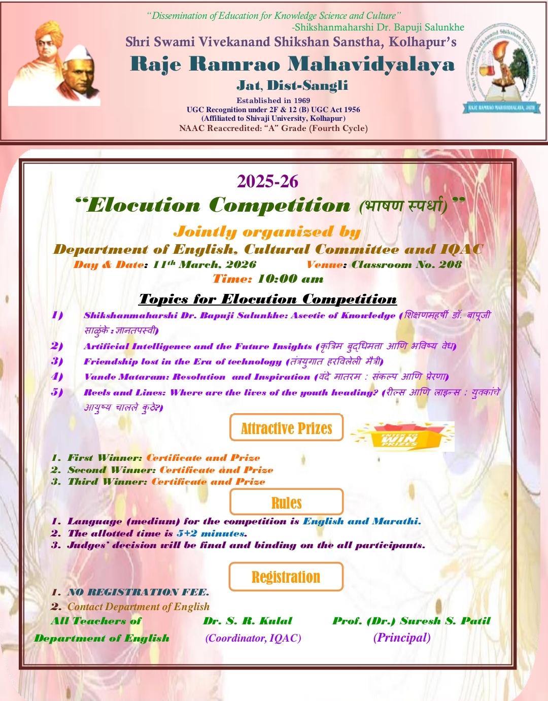 "Elocution Competition (भाषण स्पर्धा)" 10/03/2026.