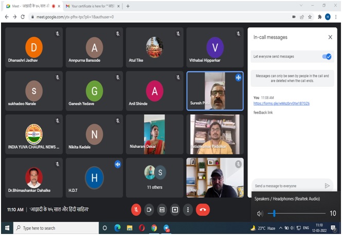 अग्रणी महाविद्यालय योजना व हिंदी विभाग यांच्या संयुक्त कार्यशाळेत बापूजींच्या प्रतिमेला अभिवादन करतांना महाविद्यालयाचे प्राचार्य डॉ.सुरेश पाटील, प्रा. स्नेहल वरेकर, डॉ.शिवाजी कुलाल व हिंदी विभागातील प्राध्यापक.