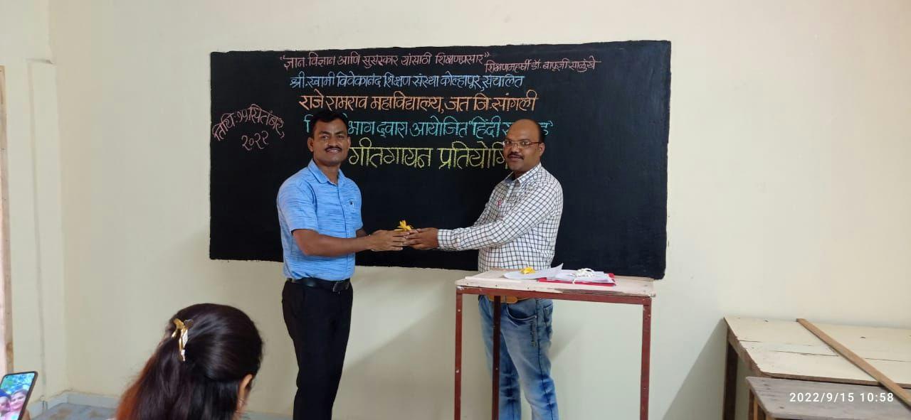 अग्रणी महाविद्यालय योजना व हिंदी विभाग यांच्या संयुक्त कार्यशाळेत प्राचार्यांचे स्वागत करतांना हिंदी विभागप्रमुख प्रा. एच. डी. टोंगारे