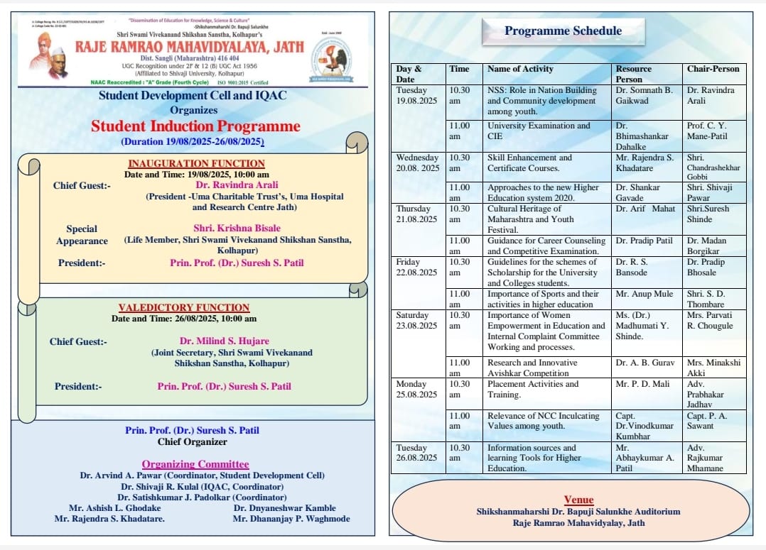 Student Induction Programme from 19/08/2025 to 26/08/2025.