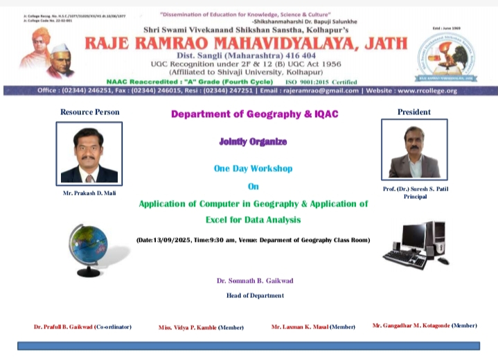 One Day Workshop On "Application of Computer in Geography & Application of Excel for Data Analysis" on 13th September 2025.