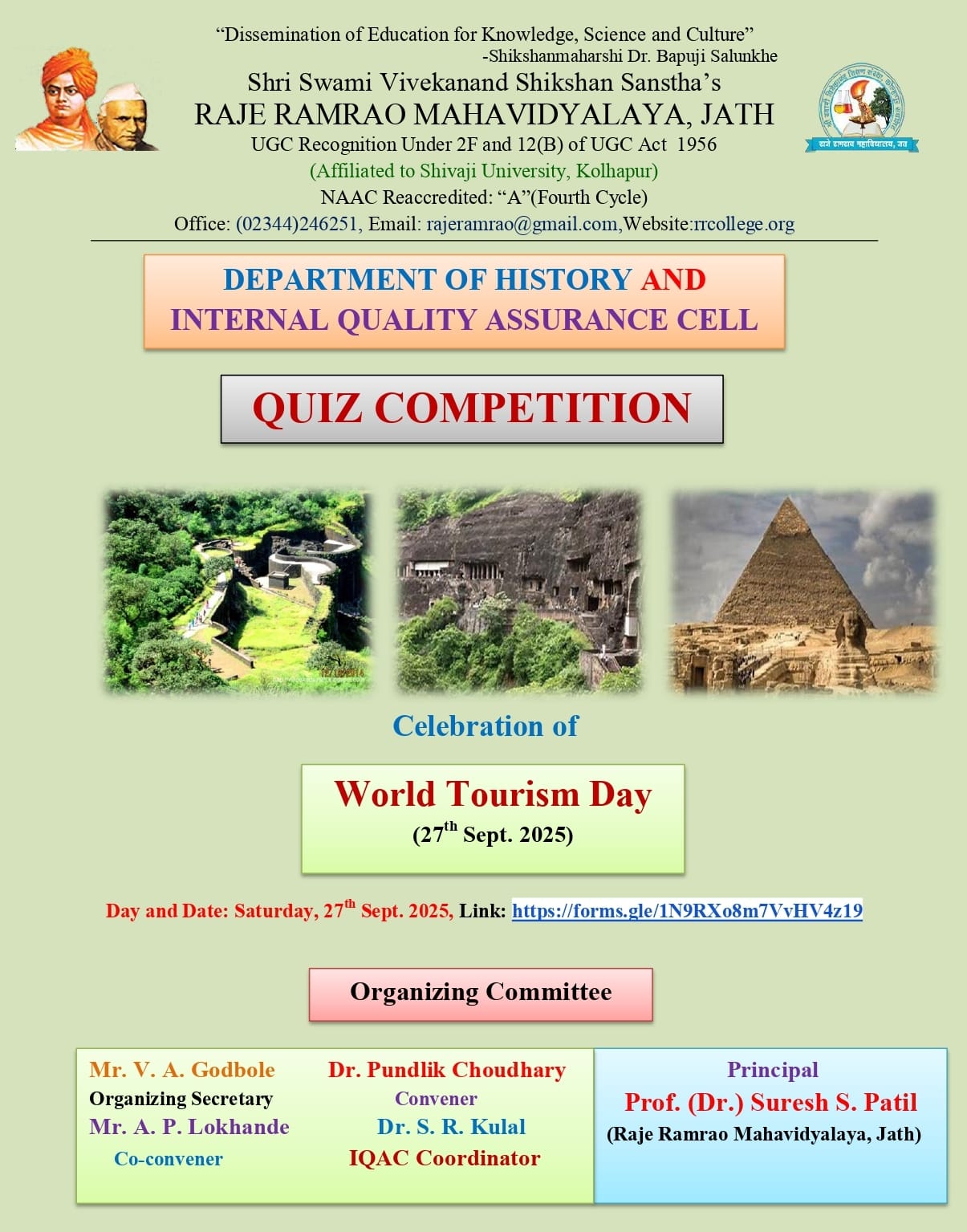 QUIZ COMPETITION Celebration of World Tourism Day (27th Sept. 2025)