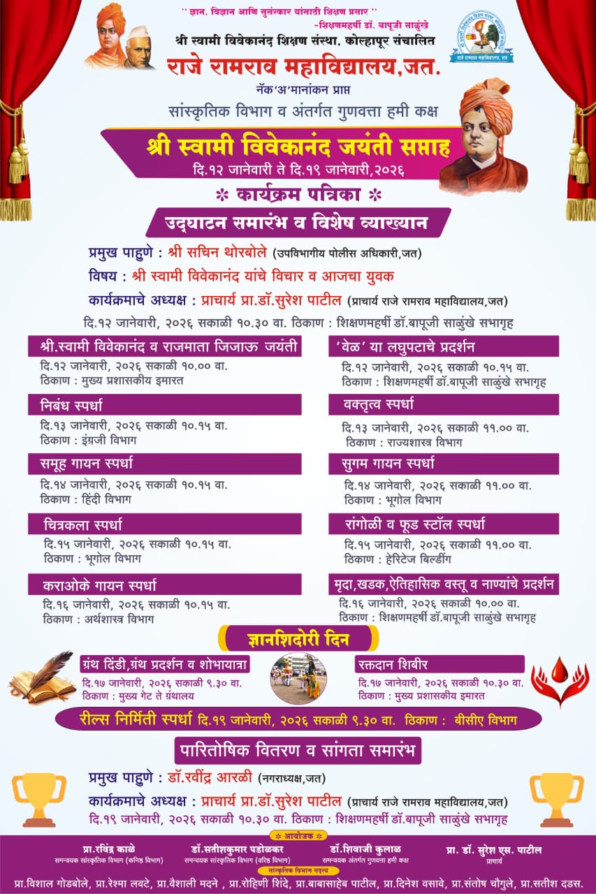 Weekend celebration of Shri Swami Vivekananda's Jayanti 12th January to 23th 2026.