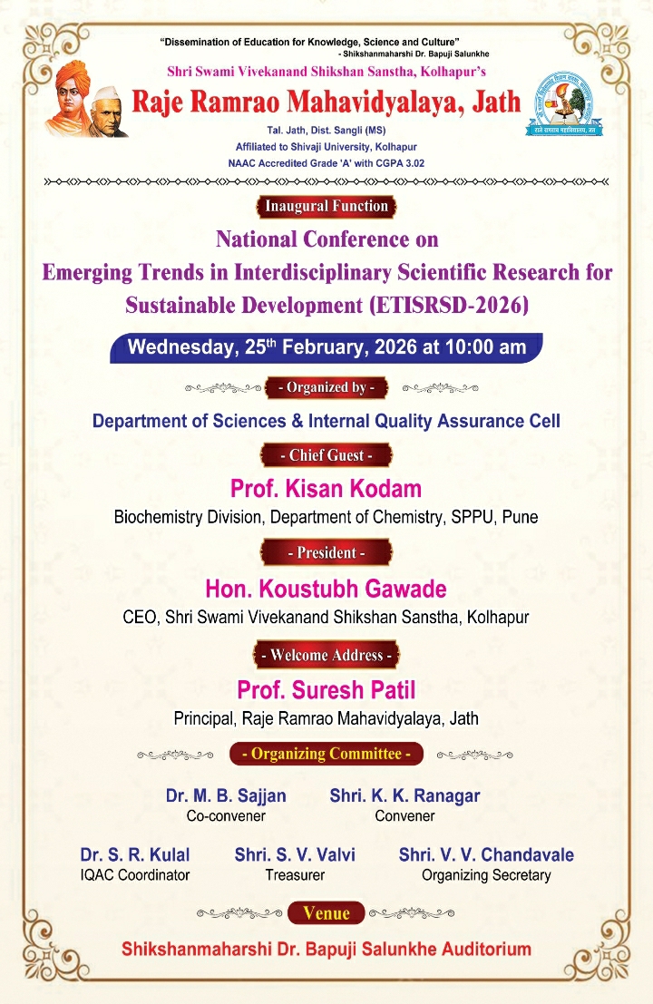 National Conference on Emerging Trends in Interdisciplinary Scientific Research for Sustainable Development (ETISRSD-2026) on 25/02/2026.