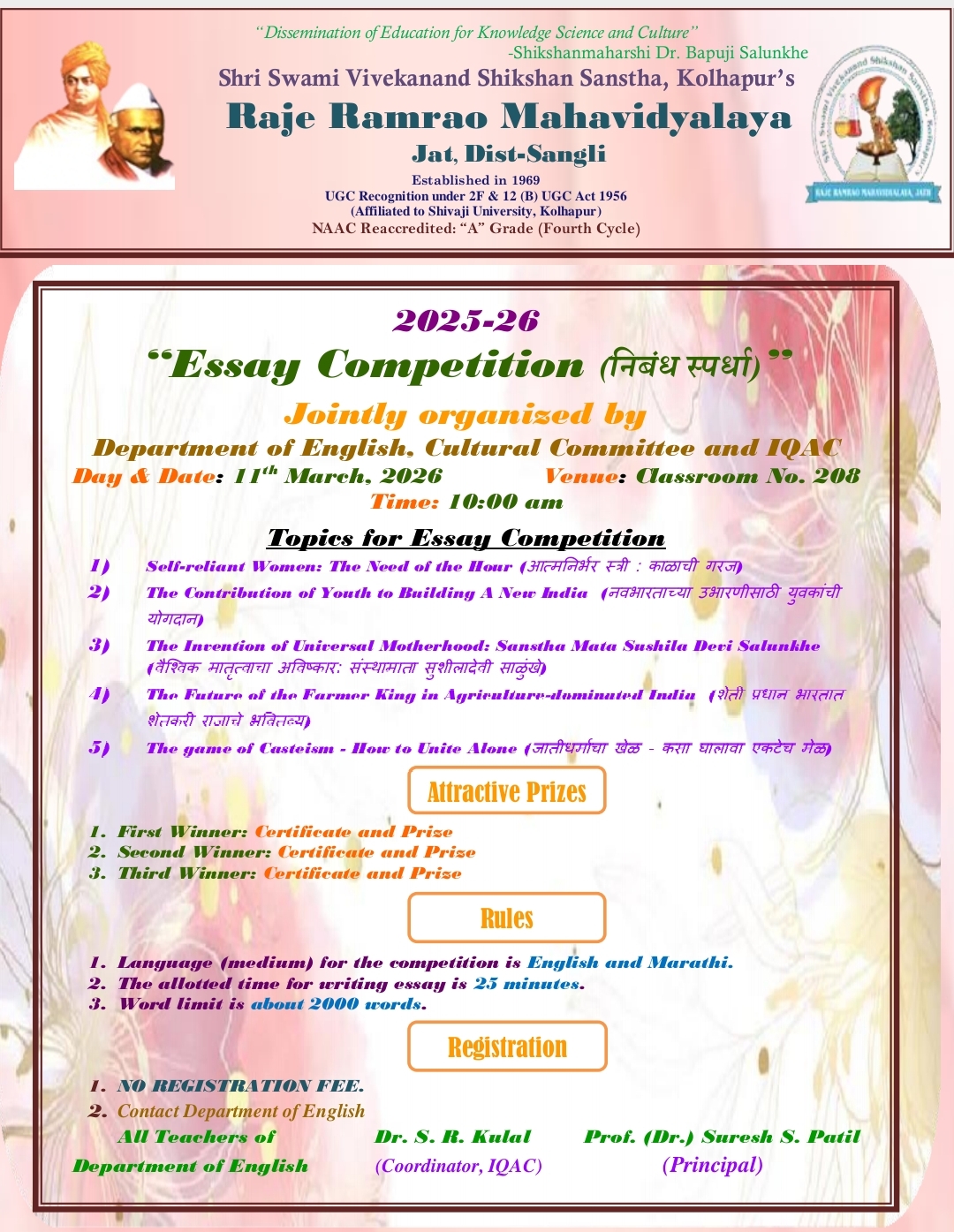 "Essay Competition (निबंध स्पर्धा) on 11/03/2026.